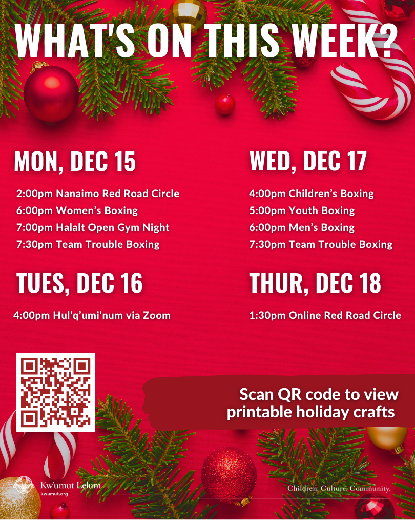 - “What’s on This Week?” from Kwumut Lelum Child and Family Services.